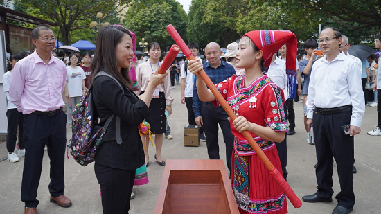 学校是传承非遗的重要载体之一,为了深入推进非物质文化遗产保护, 由红水河文化旅游开发有限公司牵头从2023年2月开始就陆续在广西民族师范学院,都安瑶族自治县职业教育中心、南宁市明秀小学等开展“非遗进校园系列活动”,包括将特色非遗项目引入课堂,定期邀请非遗传承人走进校园开展非遗民族医药文化讲堂,非遗技艺传授等,让传统文化薪火相传。